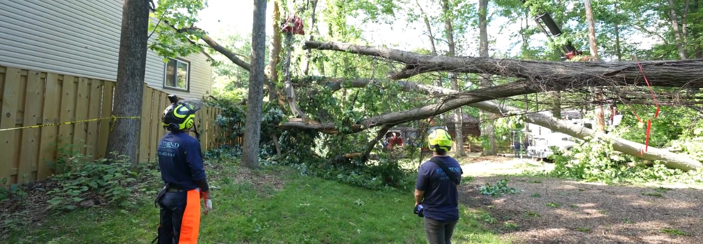You should never attempt removing storm-damaged trees yourself. We are licensed and certified professionals with the proper safety equipment for emergency tree removal. Damaged trees can be extremely dangerous, and we don’t want you hurting yourself trying to move a downed tree. Call us immediately to request professional assistance removing storm-damaged trees or before a storm for cabling and bracing.